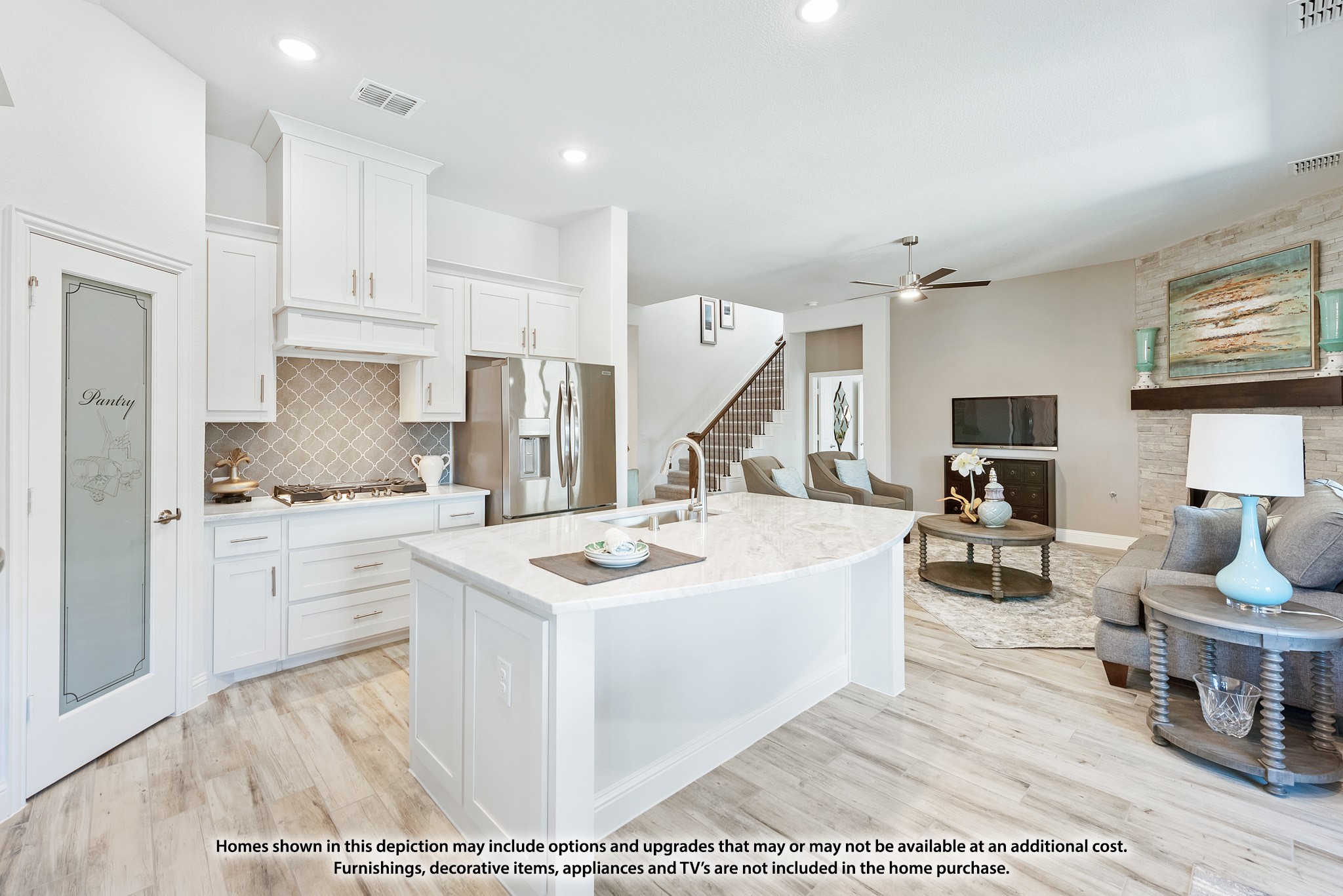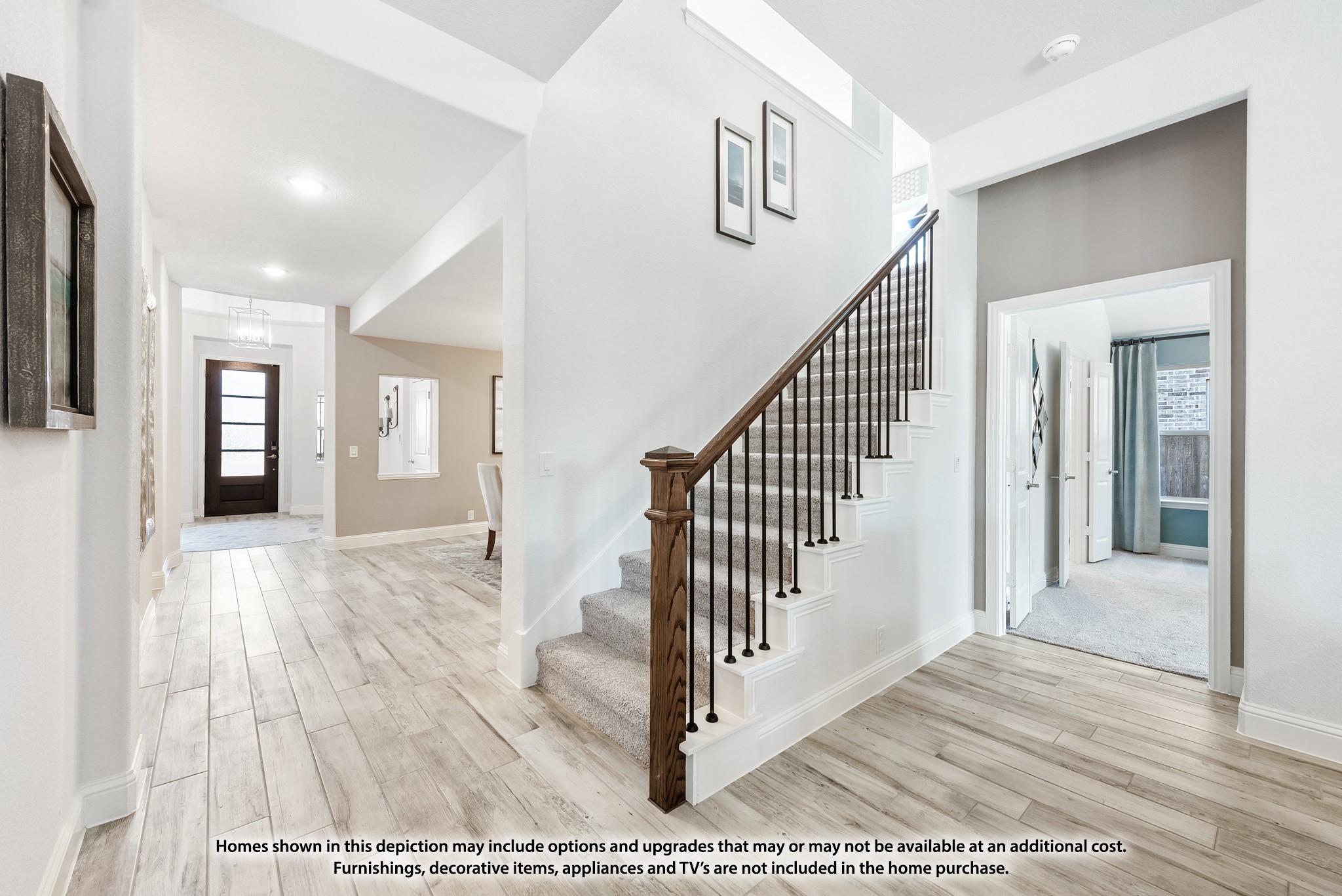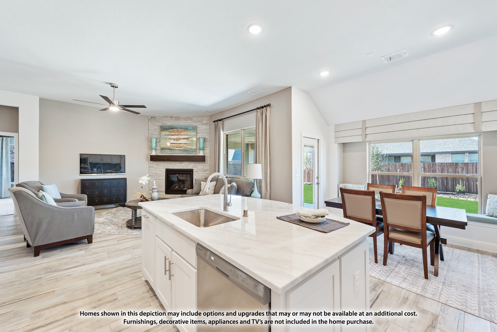 Step into the epitome of modern country living in Burleson with the stunning Carolina IV floor plan by Bloomfield Homes! From the moment you arrive, the brick and stone front exterior and welcoming rotunda entry set the stage for an unmatched blend of elegance and comfort. Imagine entertaining in your open-concept home where the deluxe kitchen dazzles with white shaker cabinets, stainless steel appliances--including a gas cooktop and double oven--and sleek quartz countertops that extend into every bath. The seamless flow from the gourmet kitchen to the family room, highlighted by a dramatic tile-to-ceiling direct vent fireplace with gas logs, creates the perfect backdrop for gatherings and quiet evenings alike.