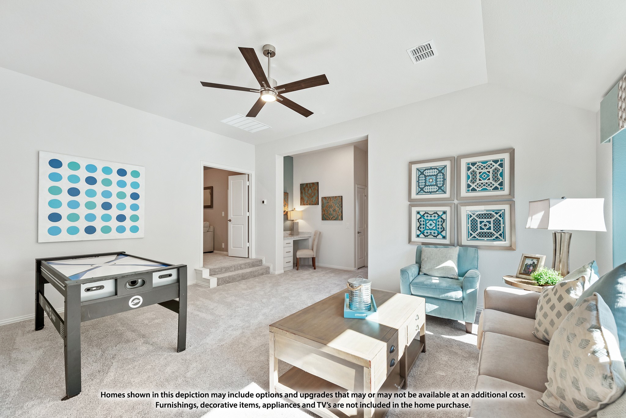 Luxurious hardwood flooring downstairs along with meticulously upgraded floor tile and carpeting enhance every step you take, while elegant wall tile with mosaic accents add a touch of artistic flair throughout the home. Designed with both style and practicality in mind, the Carolina IV offers a thoughtfully arranged layout: three spacious bedrooms and two baths on the main level, complemented by an additional bedroom, bath, game room, and media room upstairs. Plus, enjoy the convenience of a study, built-in shelving and a 2.5-car garage featuring a custom cedar door.